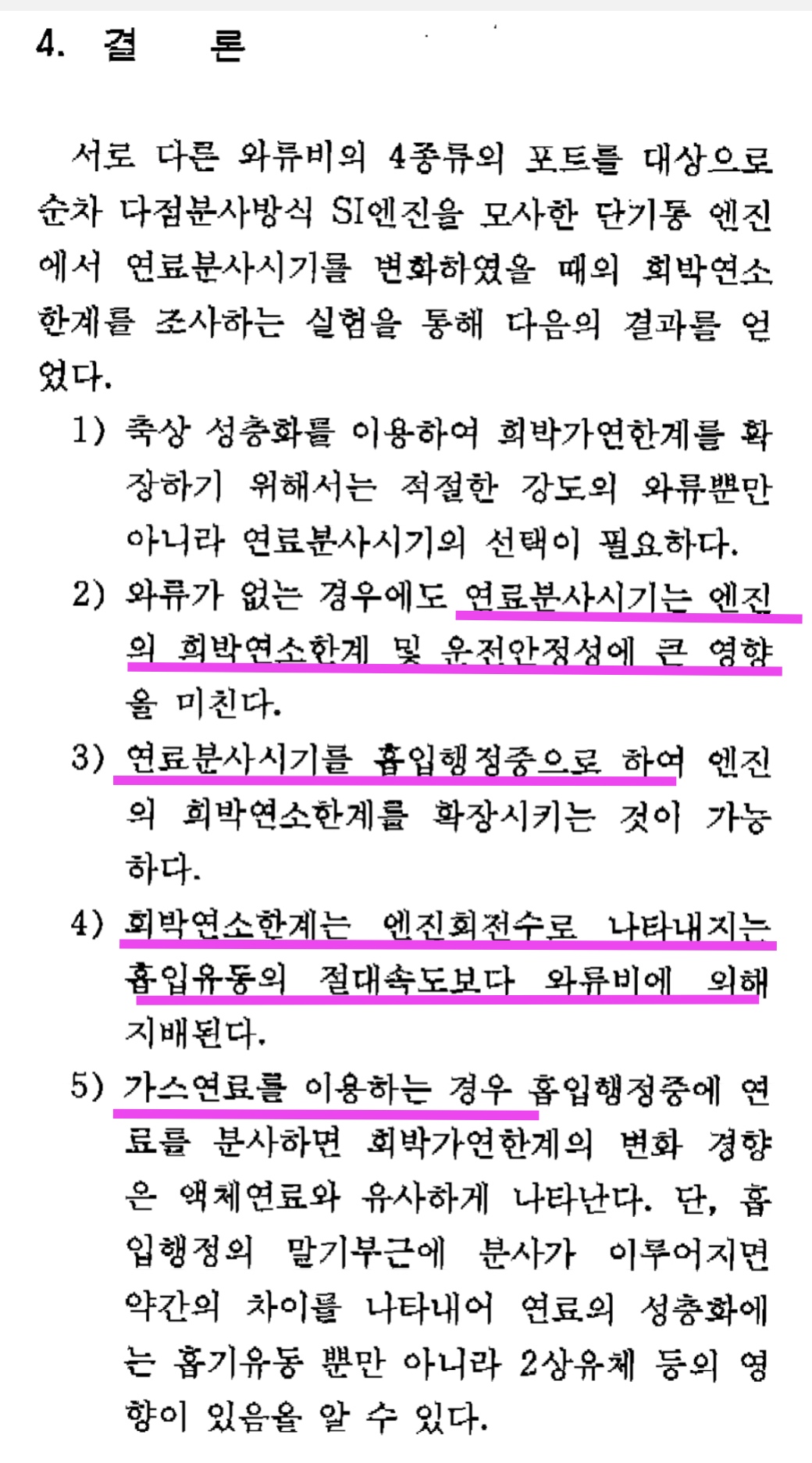 이 논문은 1997년에 작성된 논문이므로 대략적인 이론이 그렇다 하고 가져왔습니다. 현재는 터보차저를 사용하는 기술이 더 발전하였고 훨씬 더 정밀하게 직분사를 할 수 있으므로 위의 단점의 일부는 전자적으로 해결할 수 있습니다.