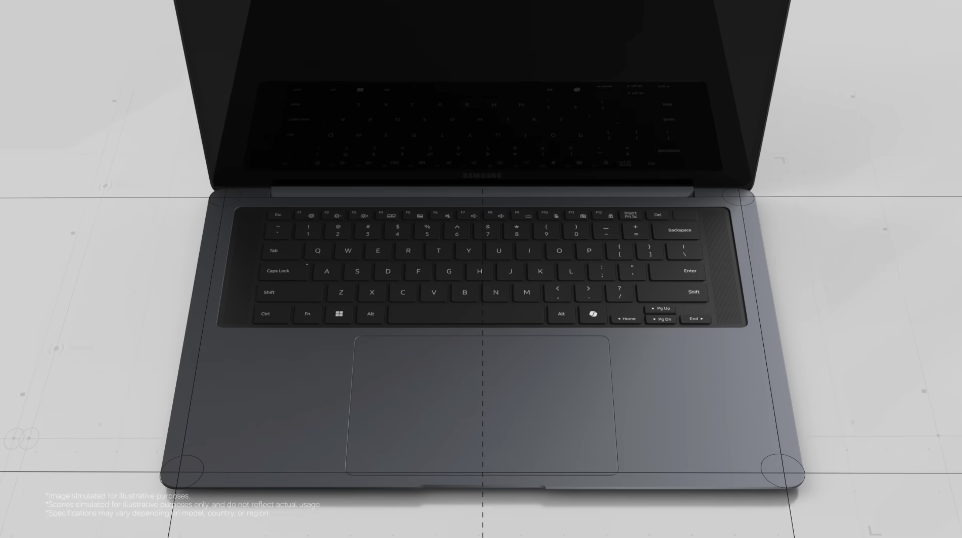 키보드 주변 부분을 검은색으로 통일하고 16인치에서는 스피커홀이 키보드 양쪽으로 배치됩니다. (14인치는 좌우 스피커홀이 없습니다) 16인치에서 전작과 다르게 텐키(숫자키)가 빠지고 터치패드가 정가운데로 이동하는, 최신 노트북 트렌드에 맞는 구성으로 변경됩니다. 아무래도 사무용으로는 텐키를 원하는 수요가 많이 때문에 B2B에서의 텐키가 있는 모델 분리가 있다는 소문이 있습니다. 그렇게 될 경우 좌우 스피커홀은 삭제될 가능성이 높습니다.