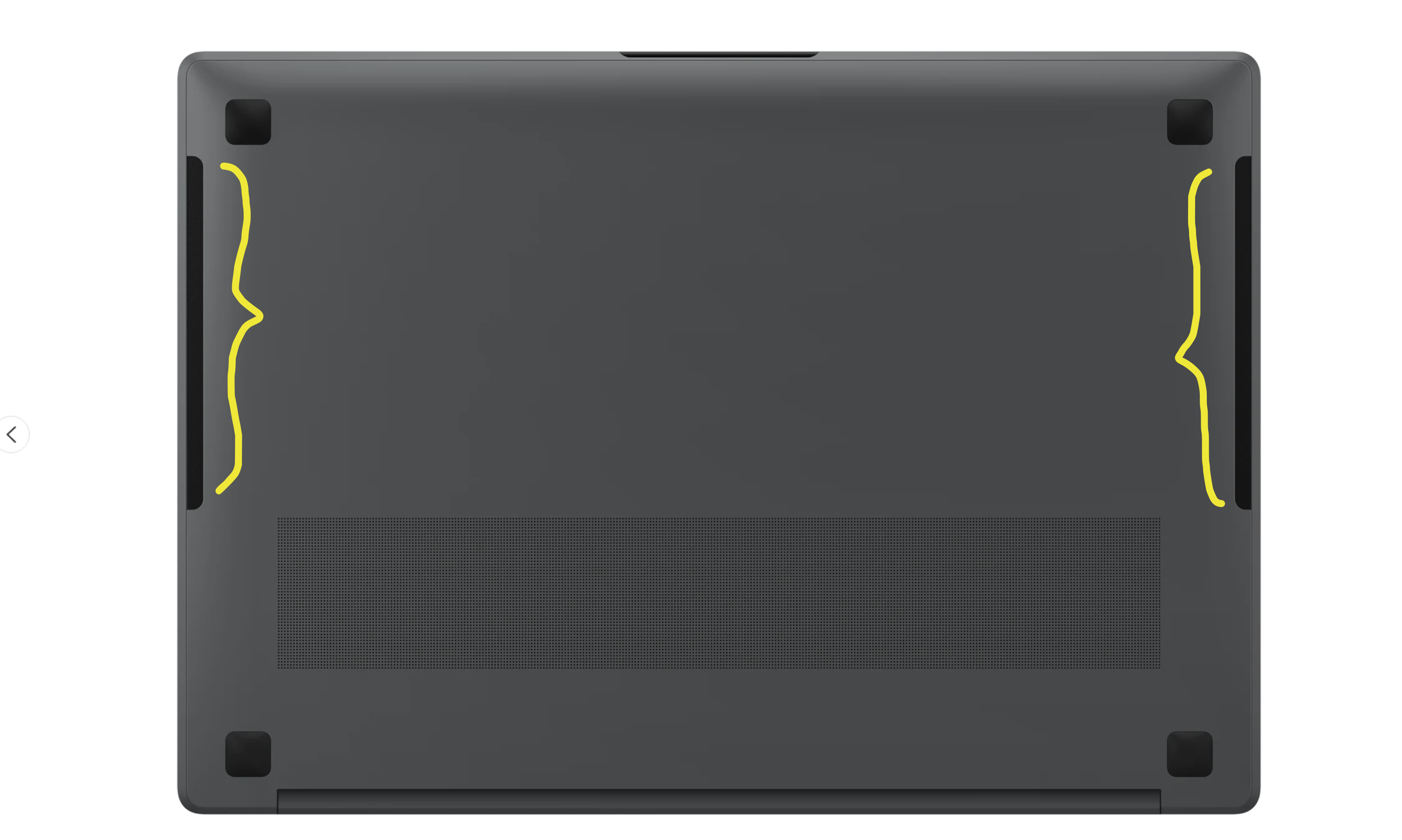 전작의 경우 하단에 있는 스피커홀을 통하여 모든 소리를 출력하였습니다. 14인치는 이와 같은 구성을 유지합니다